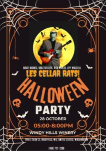 Cellar Rats will be back at Windy Hills playing from 5-8pm! Costumes are encouraged and there will be a prize for best costume! All ages welcome, food and drinks available for purchase. No tasting flights available after 4pm. Bring your dancing shoes!