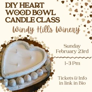 **SOLD OUT** Join us for a creative and fun-filled DIY candle-making class where you'll craft your very own candle in a beautiful heart-shaped wooden bowl! In this hands-on workshop, participants will learn the art of candle making, including the proper techniques for melting wax, adding fragrances, and pouring candles. At the end of the class,...